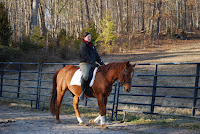 What a pretty day yesterday ended up being! Normally our Saturdays are packed with lessons, but due to illnesses and students out of town, Heather and I found we had a relatively free afternoon. So we all saddled up and were able to put in some much needed saddle time. Faith went first, riding Chip and doing a long flat warm up, really concentrating on a good seat and clear cues...really making Chip listen right away. She finished up with doing a few practice jumps, then working over a small course. Chip was more excited today, but Faith took it in stride and had a really nice ride today. Chuck was suppose to take pictures of her coursing out in the field, but got distracted watching her and forgot...so we figured we would put one up of her practicing in the arena over a small crossrail the other day. They make such a good team!